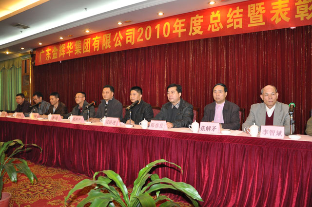虎躍前程去,兔攜好運來。告別成績斐然的2010年,廣東金輝華集團有限公司迎來了充滿機遇的2011年。2011年1月29日下午,我集團公司在花園酒店宴會廳召開2010年度總結(jié)暨表彰大會,開平市常務(wù)副市長梁和平、開平市住房和城鄉(xiāng)建設(shè)局局長吳進進、開平市建設(shè)商會秘書長李智斌等上級領(lǐng)導(dǎo)以及李甫董事長、張國球總裁等集團公司領(lǐng)導(dǎo)參加了會議。2010年,是金輝華集團發(fā)展不平凡的一年,在市委、市政府的大力支持以及