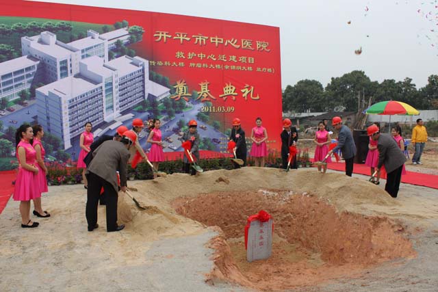 3月9日上午,我司承建的開平市中心醫(yī)院救護中心遷建項目奠基典禮在醫(yī)院西門工地隆重舉行。市人大副主任李寶貞同志、副市長梁民躍同志、政協(xié)副主席吉喆同志、中心醫(yī)院中層干部及我司項目班組成員等180多人了出典禮。救護中心遷建至中心醫(yī)院西側(cè),占地34.95畝,興建傳染科大樓四層、腫瘤科大樓七層、放療樓單層,總建筑面積19630平方米,建設(shè)工期計劃至2012年1月竣工。工程竣工后,將進一步改善醫(yī)療衛(wèi)生條件,提