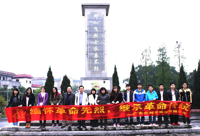 --記我司青年團(tuán)員祭奠烈士紀(jì)念碑,緬懷先烈遺志、決心爭(zhēng)創(chuàng)佳績(jī),踐行中國(guó)夢(mèng)的活動(dòng) 2013年4月12日,開平市鄧一飛烈士墓前,青松聳立,菊花淡淡,烈士紀(jì)念碑益發(fā)挺拔,一群青年手捧鮮花,一字兒排開,在代表獻(xiàn)上鮮花后,集體三鞠躬,并排著長(zhǎng)隊(duì),繞紀(jì)念碑一周,悼念革命烈士,向革命先烈致敬。他們就是廣東金輝華集團(tuán)有限公司的青年團(tuán)員們!為紀(jì)念 “五四”活動(dòng),廣東金輝華集團(tuán)有限公司團(tuán)委響應(yīng)團(tuán)市委的號(hào)召,開展一次祭