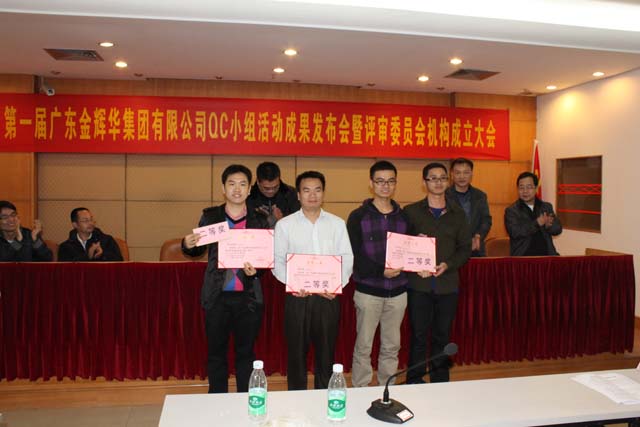 為進一步提升我集團公司工程建設質量管理水平和企業(yè)市場競爭力,激勵我司員工積極參與項目質量管理與創(chuàng)新活動,配合集團公司每年度的申報?。ú浚┘墶壹壻|量管理小組稱號,并建立集團公司工程建設質量管理小組活動的長效機制,進而推動集團公司的工法課題的采集和編制工作。2012年12月18日,第一屆廣東金輝華集團有限公司QC成果活動發(fā)布會暨評審委員會機構成立大會在開平輝華樓會議室舉辦,總工室主任陳力夫、工程管理中心主任張解矛、副主任余志文、技術中心主任詹前進參加了發(fā)布會,本次發(fā)布會特邀廣東天竟建設有限公司總工盛克亞、項目經理張國勝、高級工程師樊代清三位QC質量管理專家擔任評委。