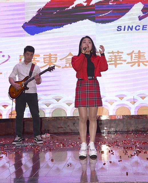 祝酒過(guò)后,難忘相聚,歡聚一堂的由公司員工組織編排的大型歌舞《盛世輝煌》率先演出。該節(jié)目是我們金輝華集團(tuán)全體員工參與、自己編排出來(lái)的,她見(jiàn)證了金輝華人的多才多藝,見(jiàn)證了金輝華人對(duì)公司的深厚感情 ,也見(jiàn)證了金輝華人對(duì)公司的厚愛(ài)與希望,更見(jiàn)證金輝華集團(tuán)公司的成長(zhǎng)與收獲。